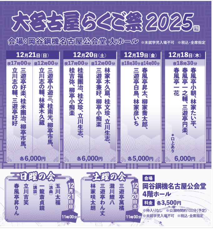 | 【会場】 | 岡谷鋼機名古屋公会堂4階ホール |